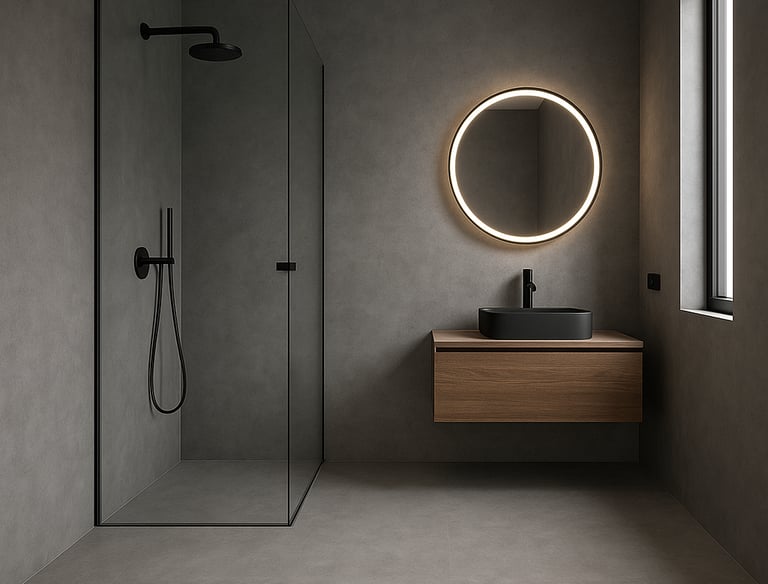 Moderni, elegantiška išvaizda, lengvai derinama su stiklo, betono ir medžio elementais. Atspari drėgmei, patvari ir lengvai prižiūrima.