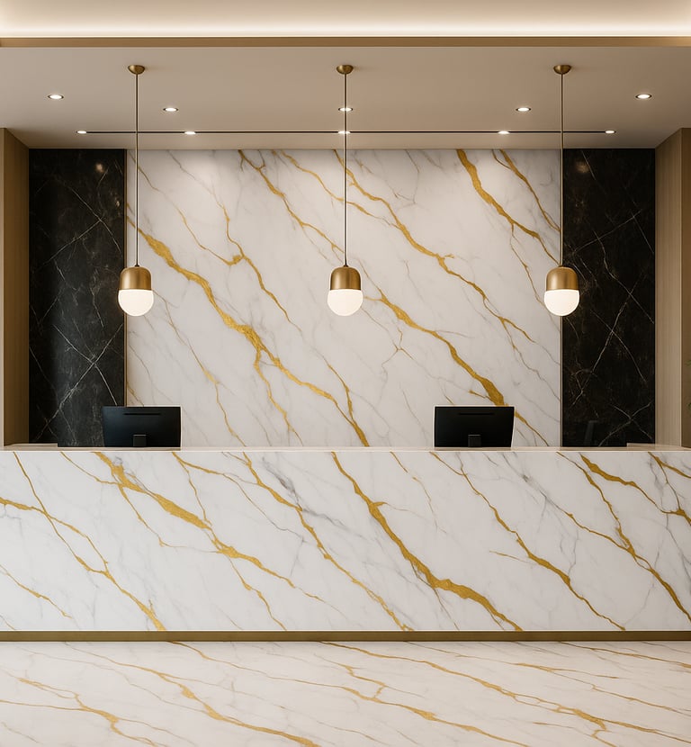 Tiekiame kolekcijas su akmens, marmuro, betono, metalo ir medžio faktūromis – greitam ir estetiškam interjero atnaujinimui. Esame jauna įmonė, skirianti daug dėmesio kiekvienam klientui – nuo konsultacijos ir medžiagų parinkimo iki logistikos ir techninių rekomendacijų.